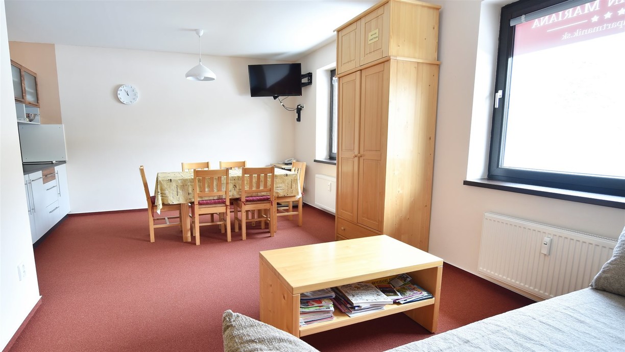 Apartament Mariana*** znajduje się w spokojnej okolicy Nowego Smokowca w apartamentowcu Familia Smokowiec. 2 pokojowy przestronny apartament jest idealny na przyjemne wakacje w Tatrach Wysokich. Dzięki pojemności do 6 osób poczujesz się komfortowo, niezależnie od tego, czy jesteś na wakacjach z rodziną czy przyjaciółmi.