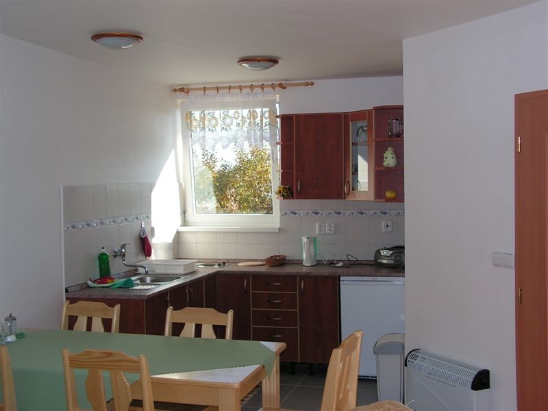 Apartamenty są dwupoziomowe, na parterze znajduje się pomieszczenie do przechowywania sprzętu sportowego (narty, rowery), salon z telewizorem i jadalnią, w pełni wyposażona kuchnia z urządzeniami i przyborami kuchennymi oraz mała toaleta z umywalką.