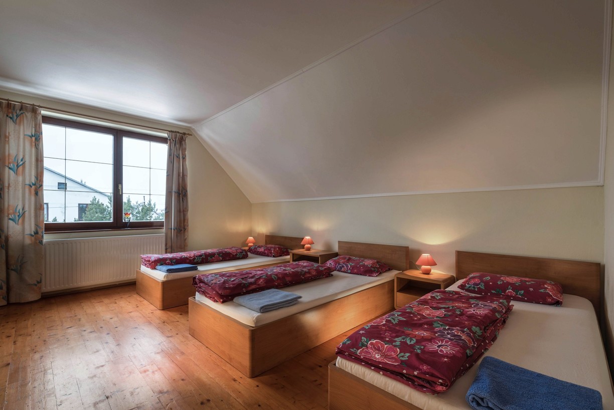 Oferuje zakwaterowanie dla 12 osób (z możliwością dostawki) w dwóch pokojach dwuosobowych, jednym pokoju trzyosobowym i jednym apartamencie pięcioosobowym (2+3 łóżka). Wszystkie pokoje posiadają łazienkę.